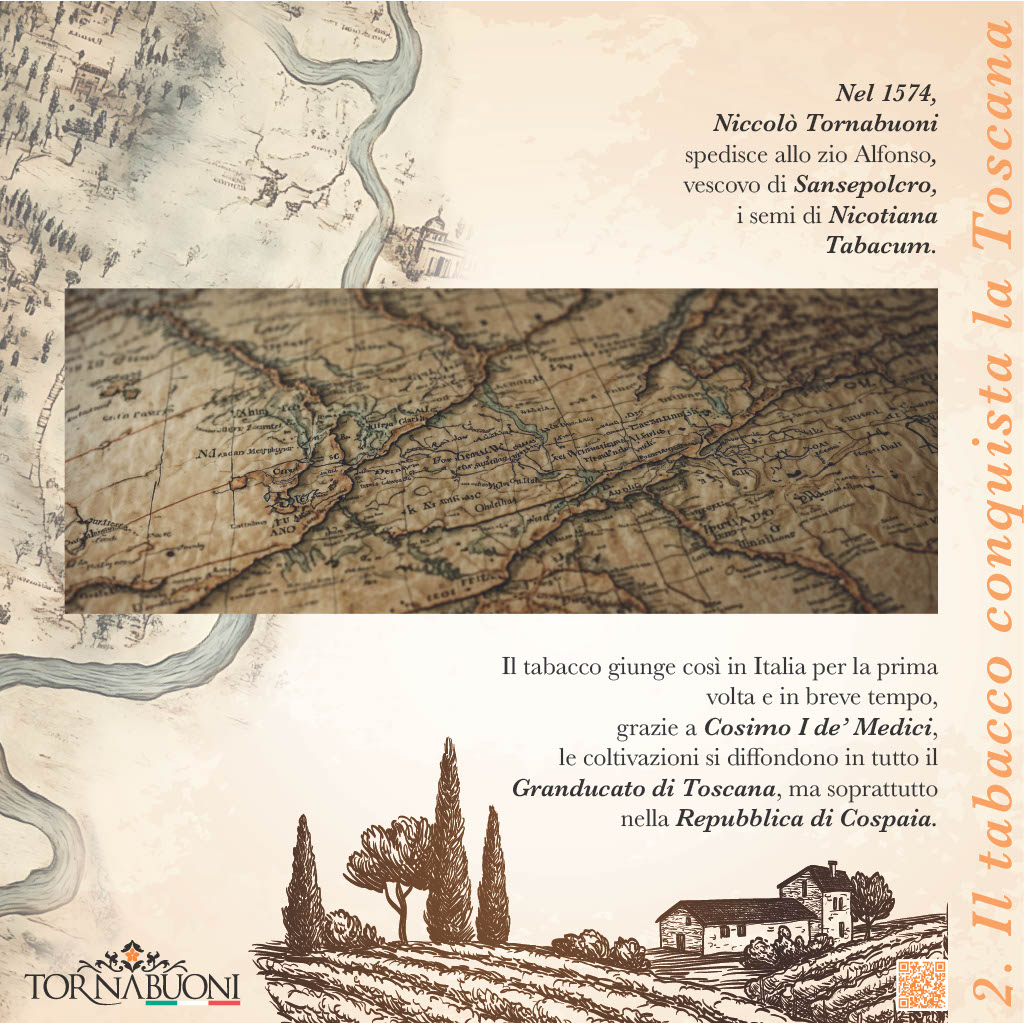 Thus tobacco arrived in Italy for the first time, and soon, thanks to Cosimo I de’ Medici, its cultivation spread throughout the Grand Duchy of Tuscany, but especially in the Republic of Cospaia